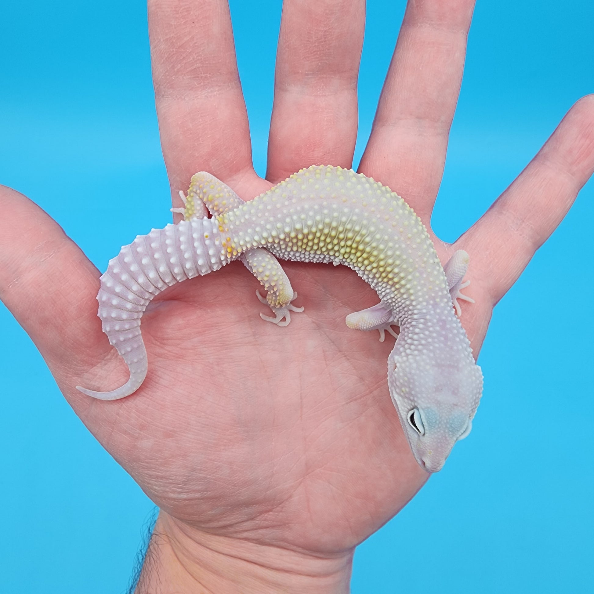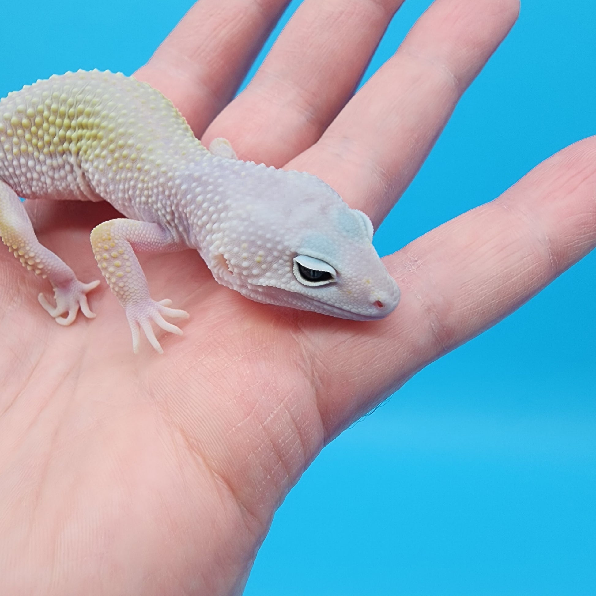 Blizzard is an amazing genetic trait that takes away ALL pattern for the leopard gecko giving it generally a grey/white appearance. Some can display hues of yellow as well. Blizzards also have the random chance to produce shaded eye pigment similar to eclipse in 3 main variations: full, half, or partial.